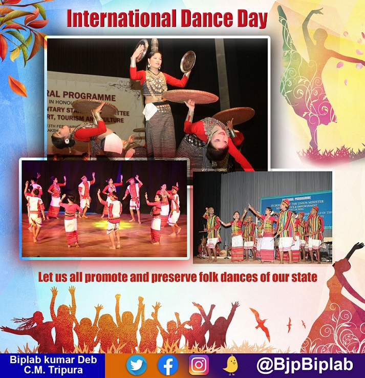 AGARTALA, April 29 2022: Tripura Chief Minister Biplab Kumar Deb called for promotion and preservation of the folk dances of Tripura. He spoke on occasion of the International Dance Day observed Friday.
