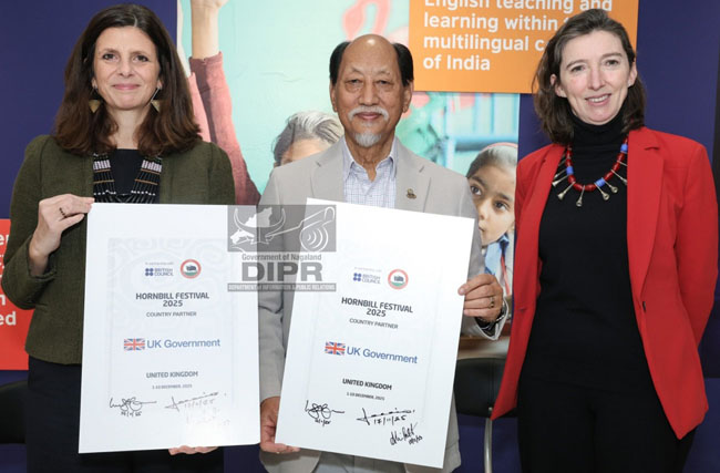 REGIONAL, November 18, 2025: Nagaland government and the British Council signed an agreement to designate the UK as a Country Partner for the Hornbill Festival 2025 scheduled for December 1-10. This collaboration aims to promote cultural exchanges, support creative talents, and increase global visibility for Nagaland's cultural heritage.
